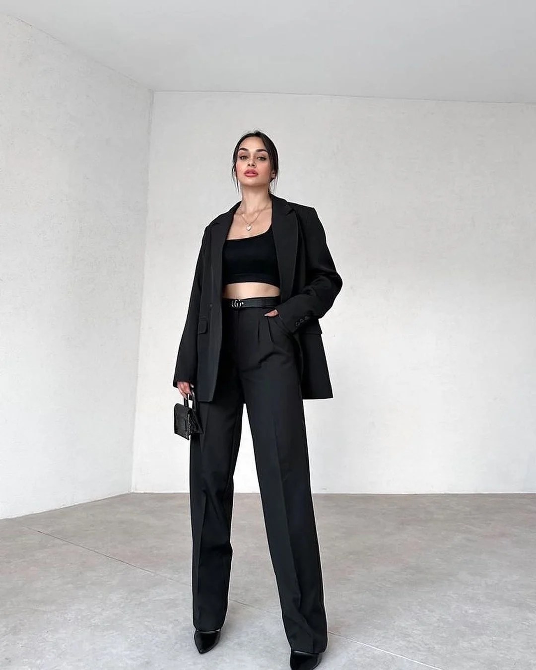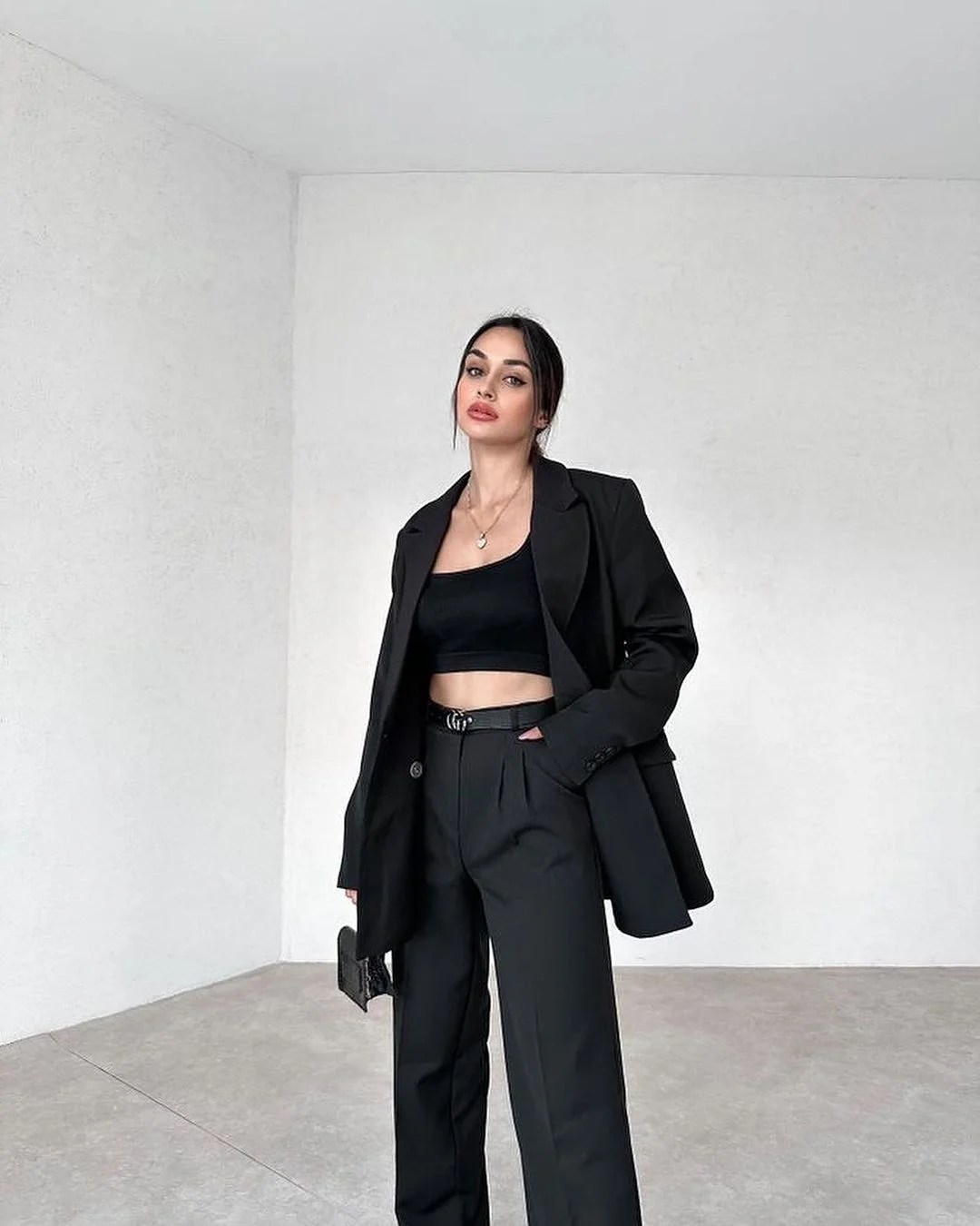 Crno oversize odijelo donosi moderni i opušteni izgled, idealan za one koji žele udobnost i stil u jednom. Ovo odijelo se sastoji od širokog sakoa i opuštenih pantalona u klasičnoj crnoj boji. Krojenje u oversize stilu omogućava slobodu kretanja i stvaranje ležernog, ali uglednog dojma.
